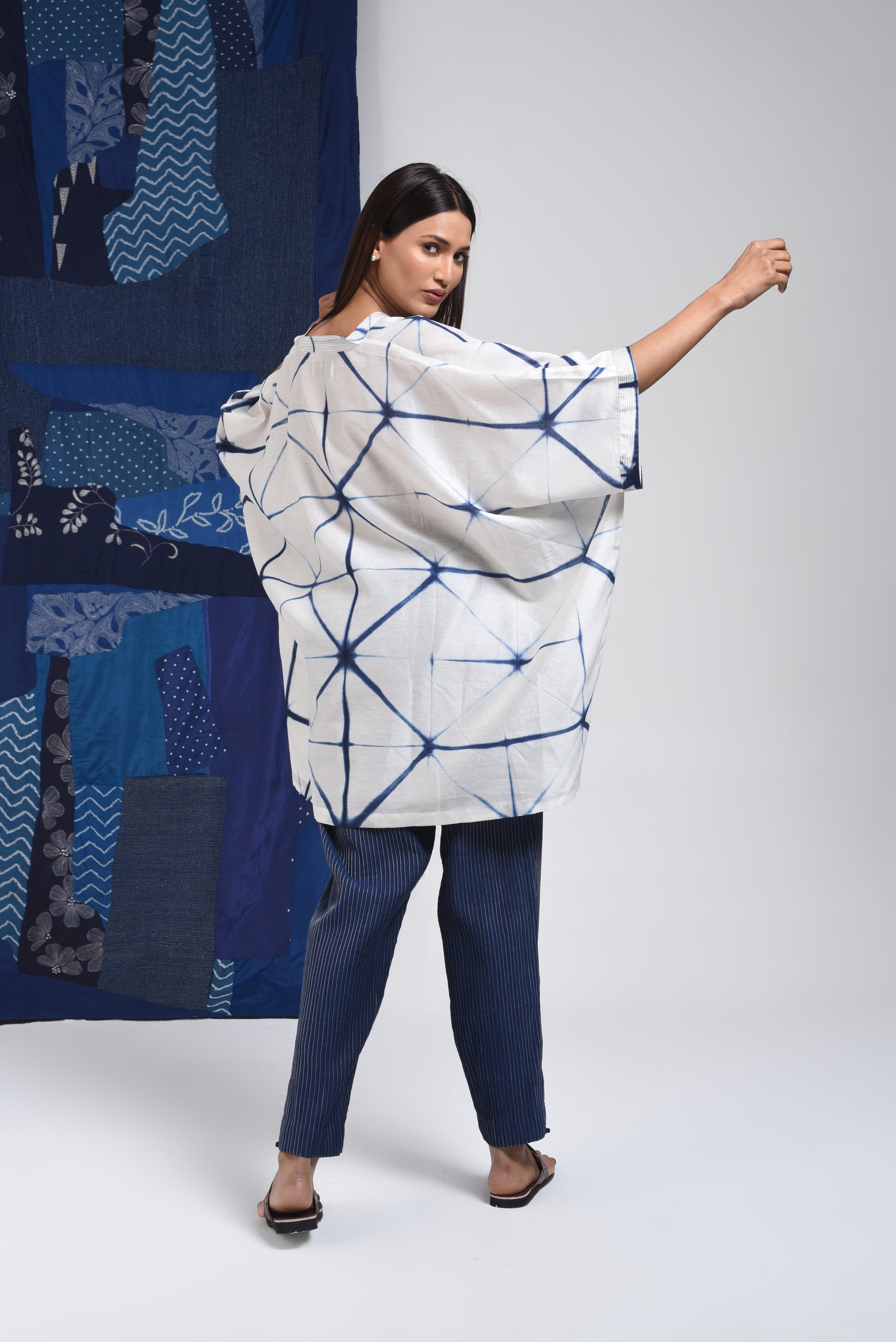 Blue & ivory clamp dyed free sized top.